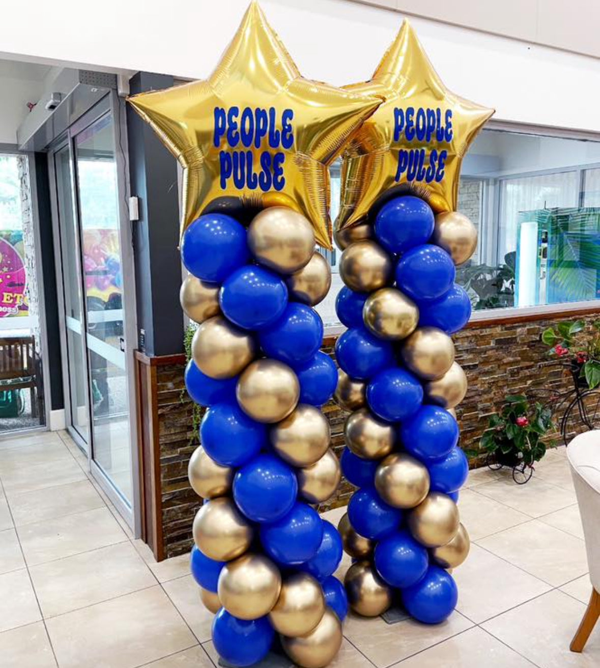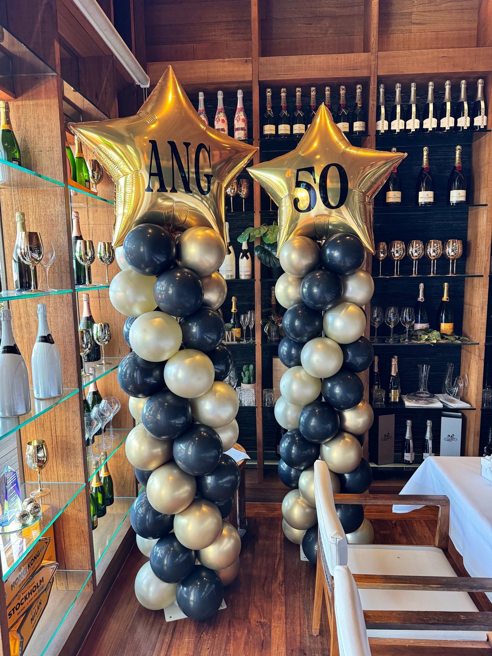 Our ever-popular columns, topped with a large Foil Star balloon AND your choice of custom text!